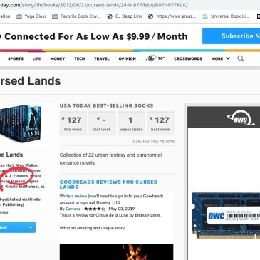 I’m so thrilled to announce that it is official! I am now a USA Today Bestselling Author! Here is the screenshot of this week’s listing where a team of authors and I worked together to make our dream a reality. We each published a book in a collective boxed set called “Cursed Lands” and earned … More Dream Achieved: USA Today Bestselling Author!